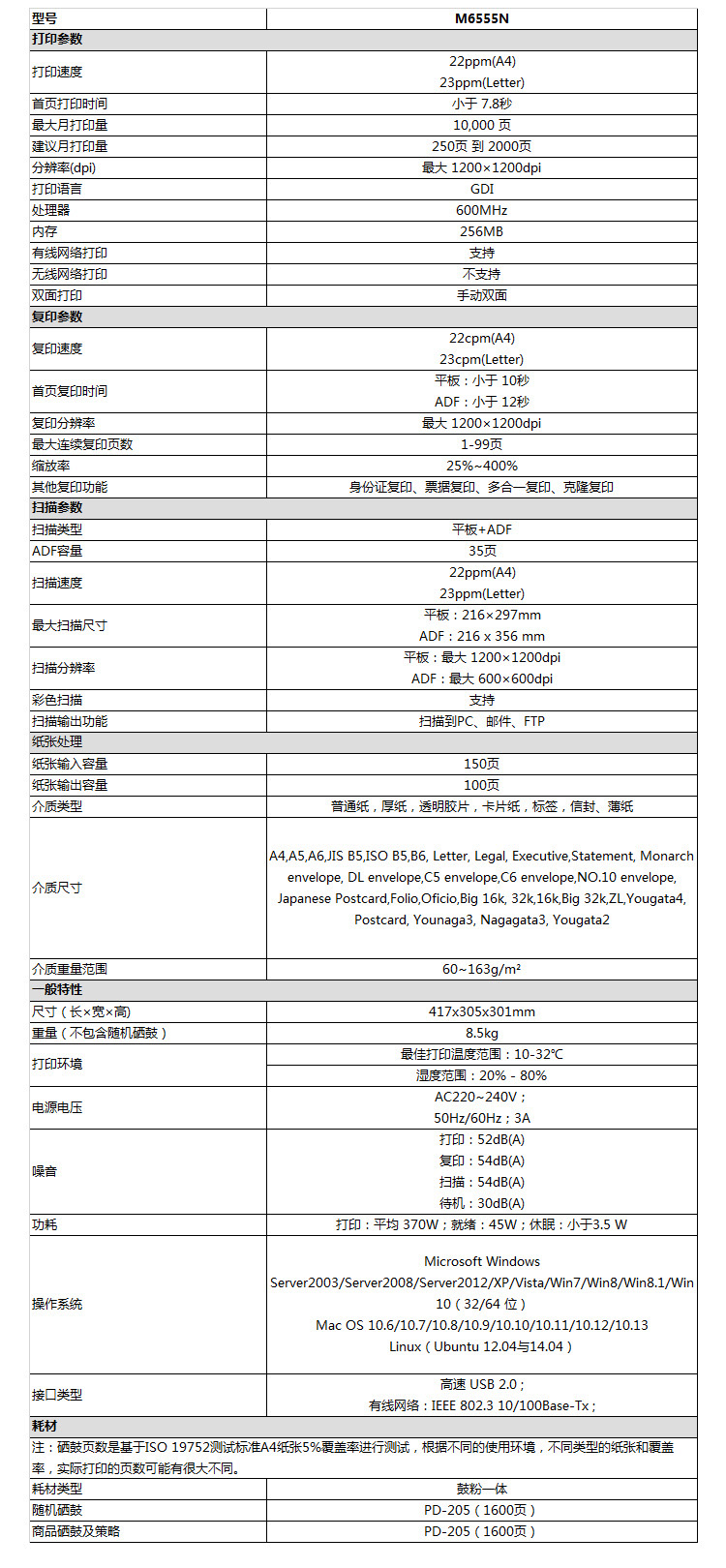 奔图(PANTUM)多功能三合一黑白激光一体机M6555N