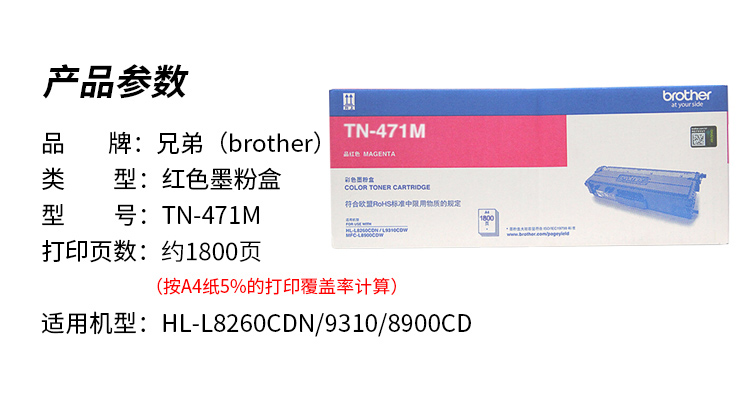 兄弟(brother)TN-471M 红色墨粉盒(适用HL-L8260CDN/9310/8900CD机型)