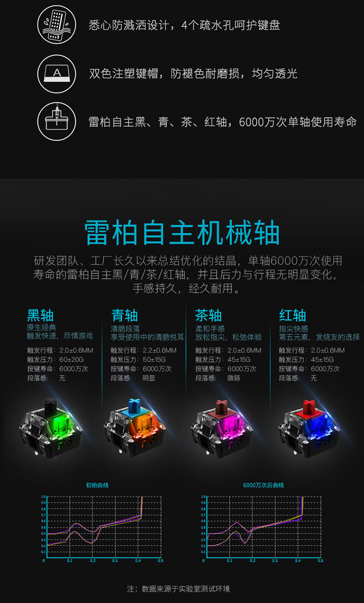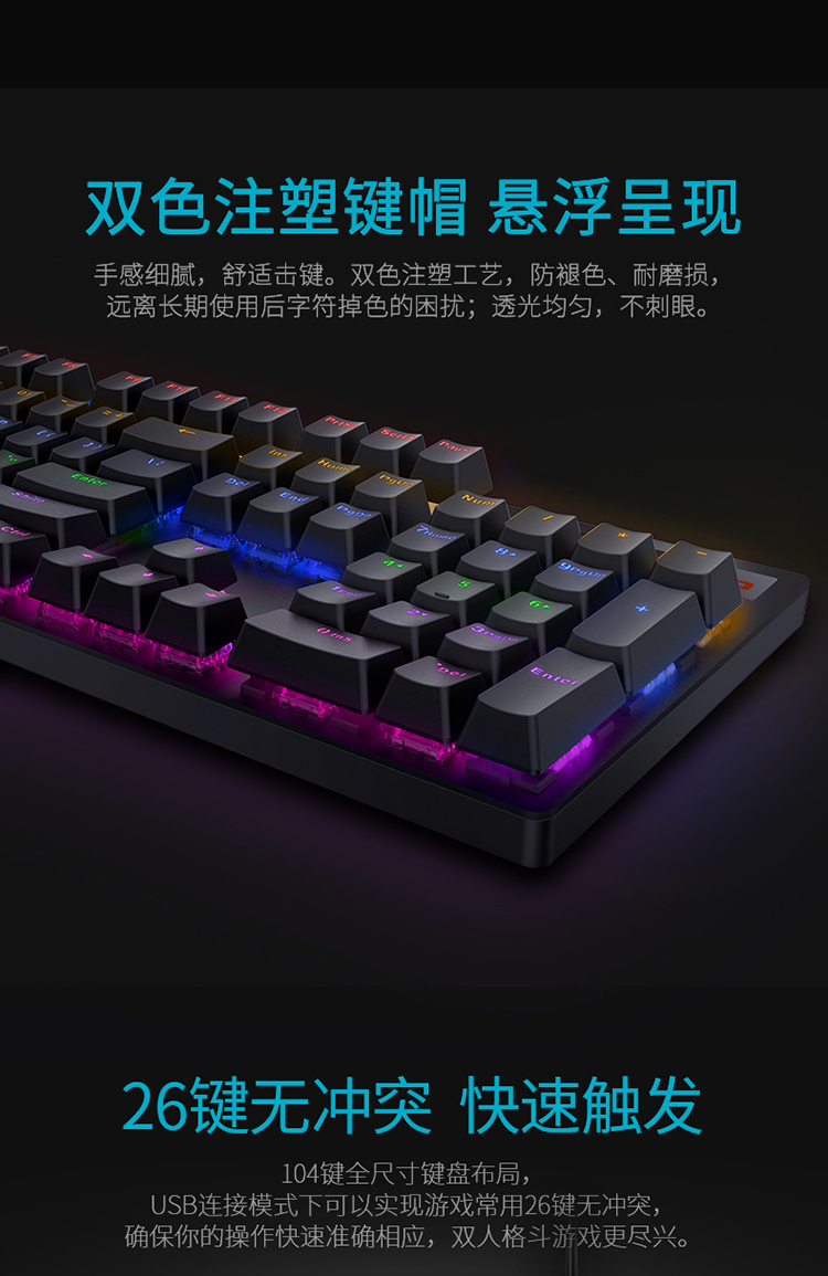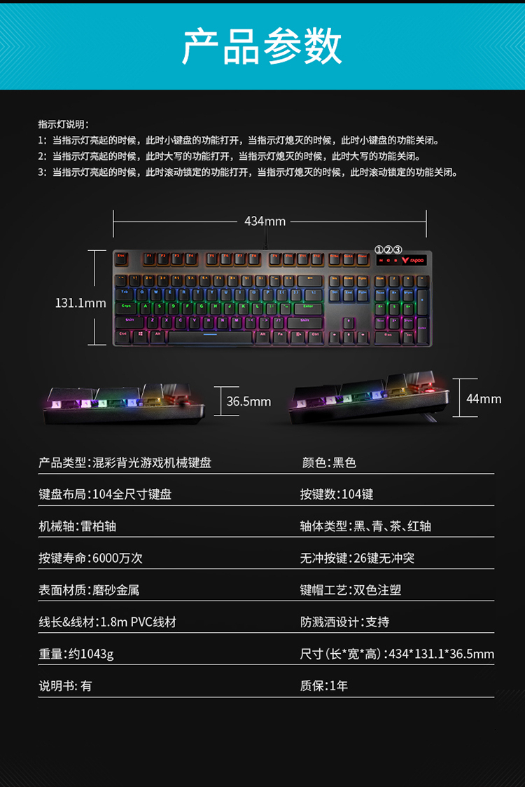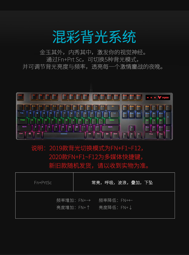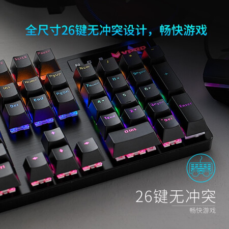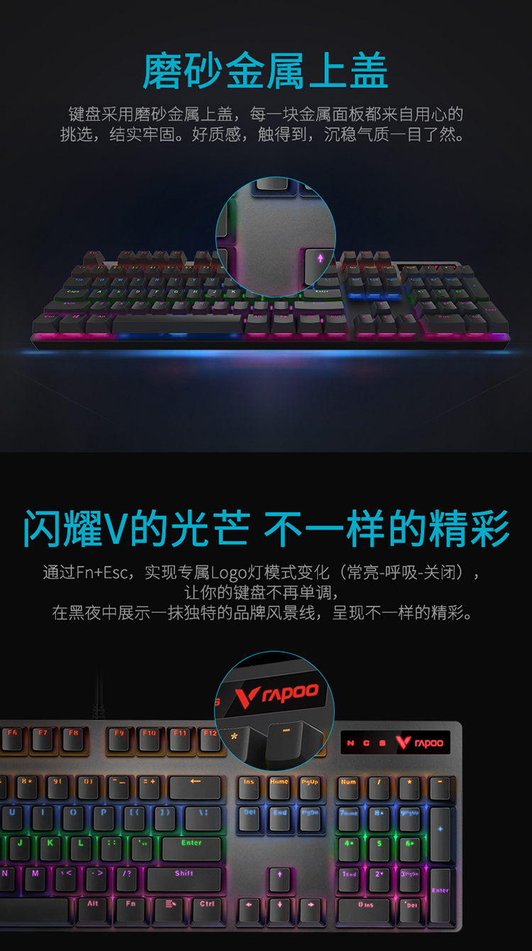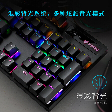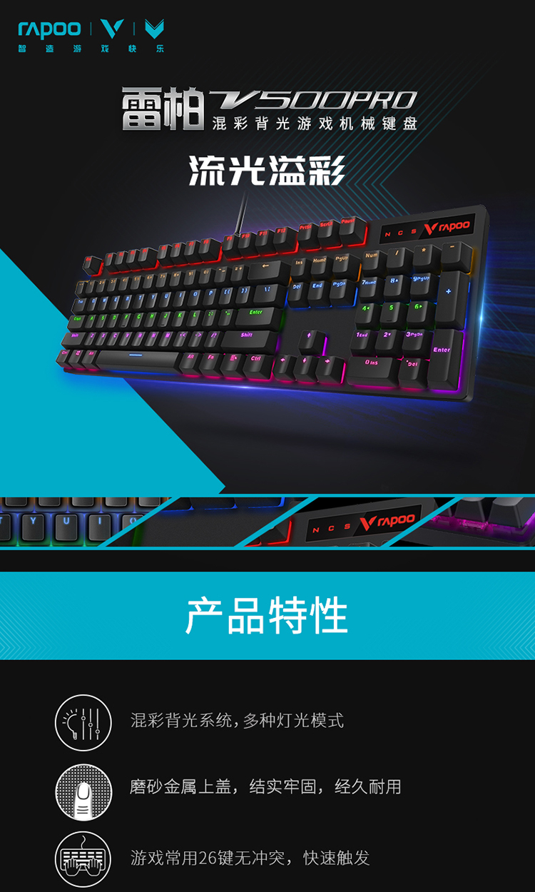 雷柏(Rapoo) V500PRO 机械键盘 有线键盘 游戏键盘 104键混光键盘 吃鸡键盘 电脑键盘 黑色 黑轴