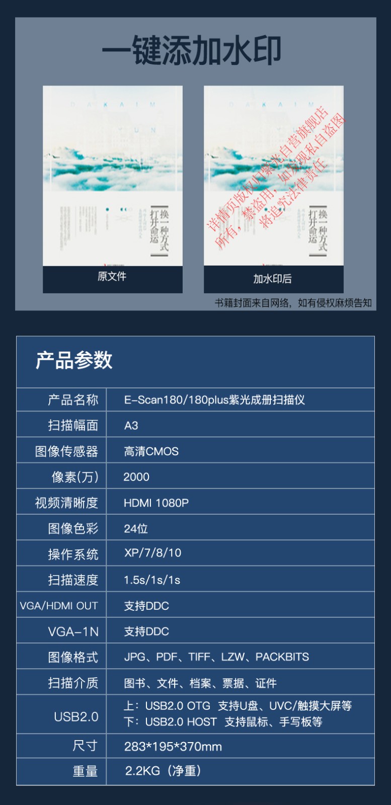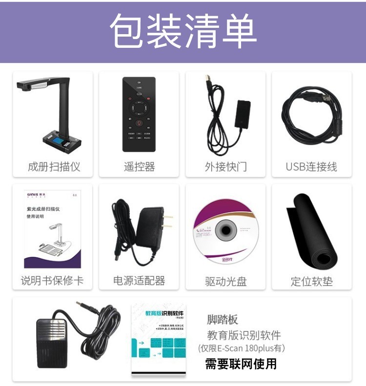 紫光(UNIS)E-Scan 160Plus/180高拍仪书籍档案合同免拆家庭企业教育专用成册扫描仪 E-Scan 180Plus (教育软件+脚踏板) 官方标配