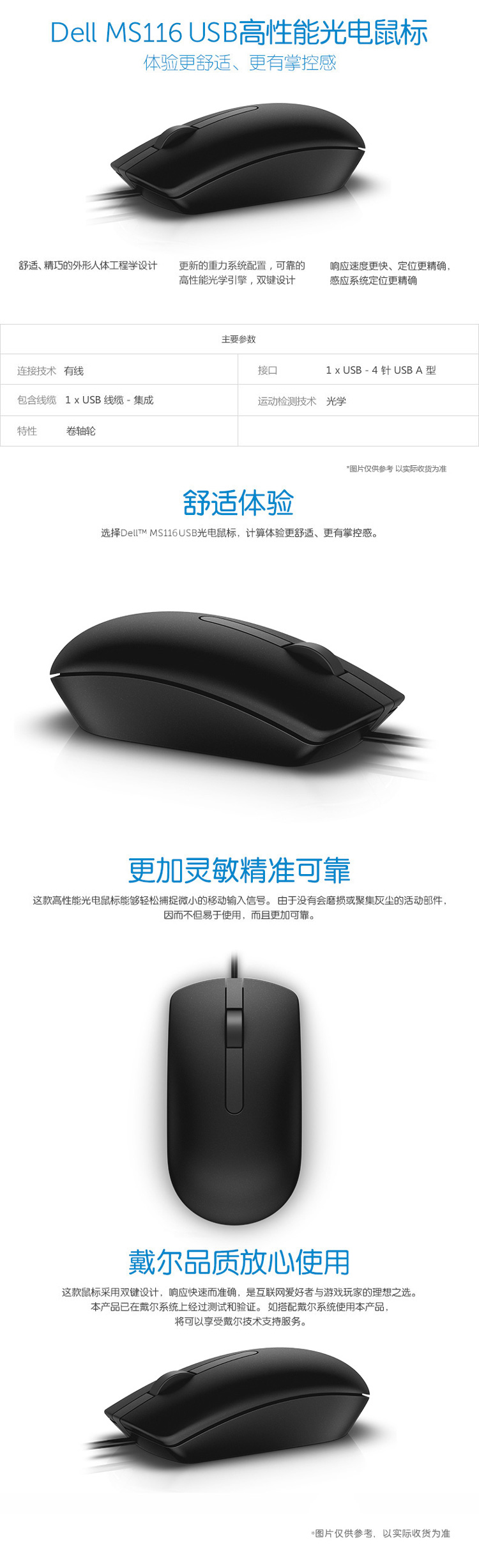 戴尔(DELL)MS116 鼠标有线 商务办公经典对称 有线鼠标 USB接口 即插即用 鼠标 (黑色)