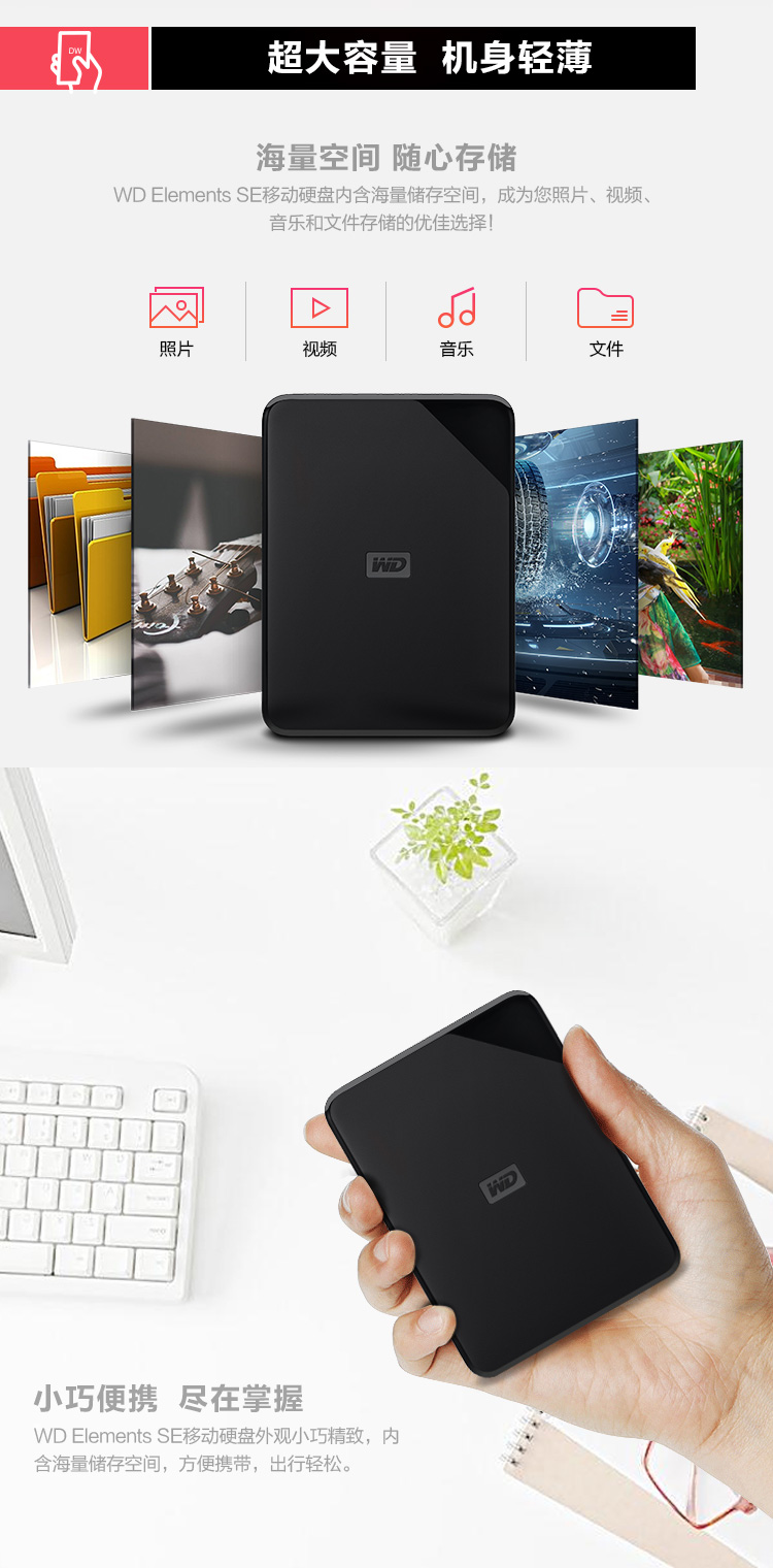 西部数据 WD 4TB USB3.0 移动硬盘 加密款