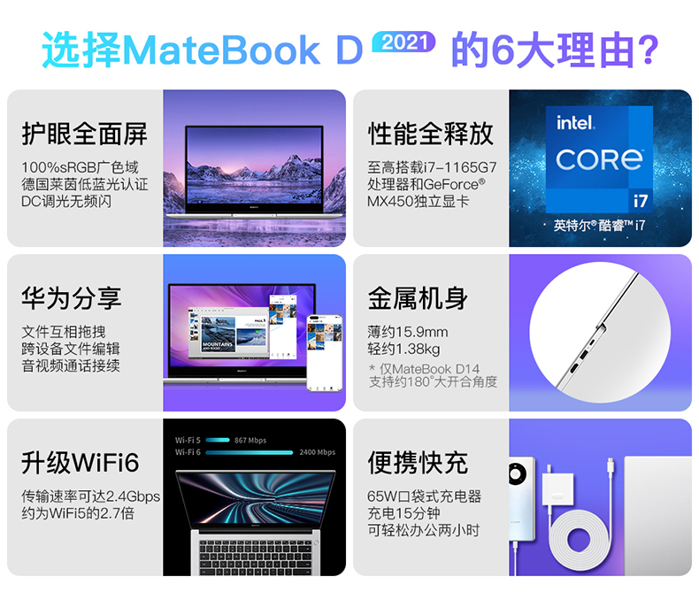 华为笔记本MateBook D14 全面屏超轻薄商务学生游戏笔记本电脑超极本 银D14|i7-1165G7 16G 512G独显