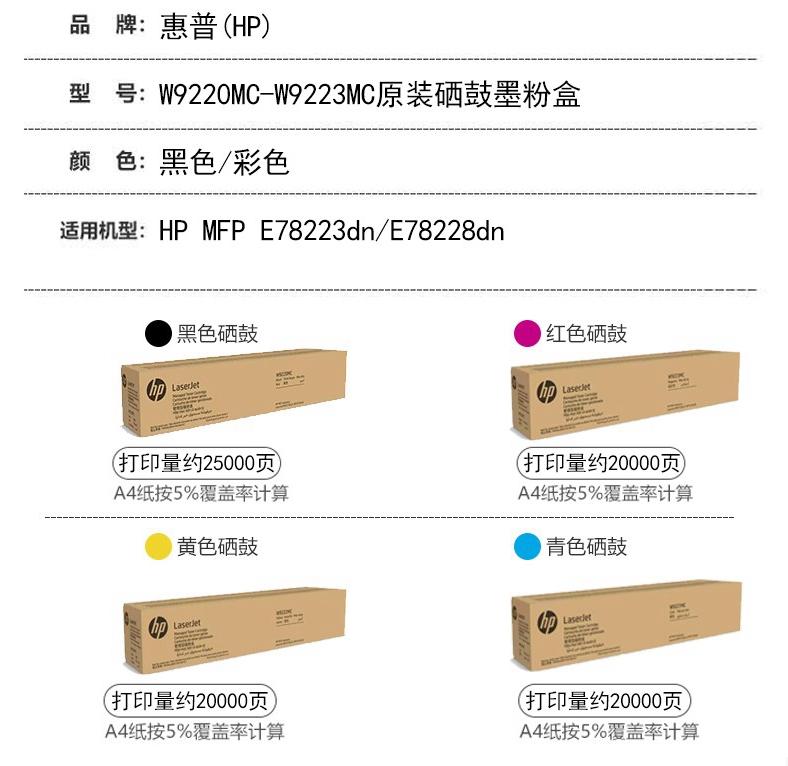 HP W9223mc原装红色墨粉盒 适用惠普E78223 78228DN, W9223MC红色墨粉盒(约20000页) 原装单支