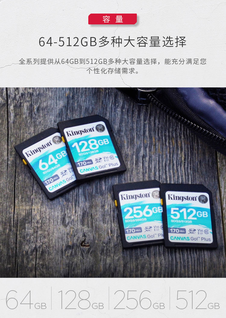 金士顿(Kingston)512GB SD存储卡 U3 V30 相机内存卡 高速sd卡大卡 4K超高清拍摄 读速170MB s 写速90MB s